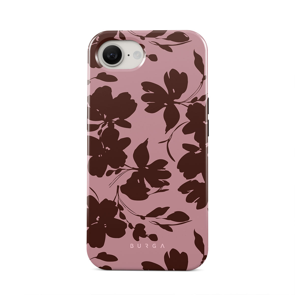 Quietly bold, our Gossip iPhone 16e phone case design speaks volumes in subtlety. A soft rosé background, layered with deep red-brown floral accents, gives off a refined, almost mysterious vibe. It's for those who let the details do the talking.