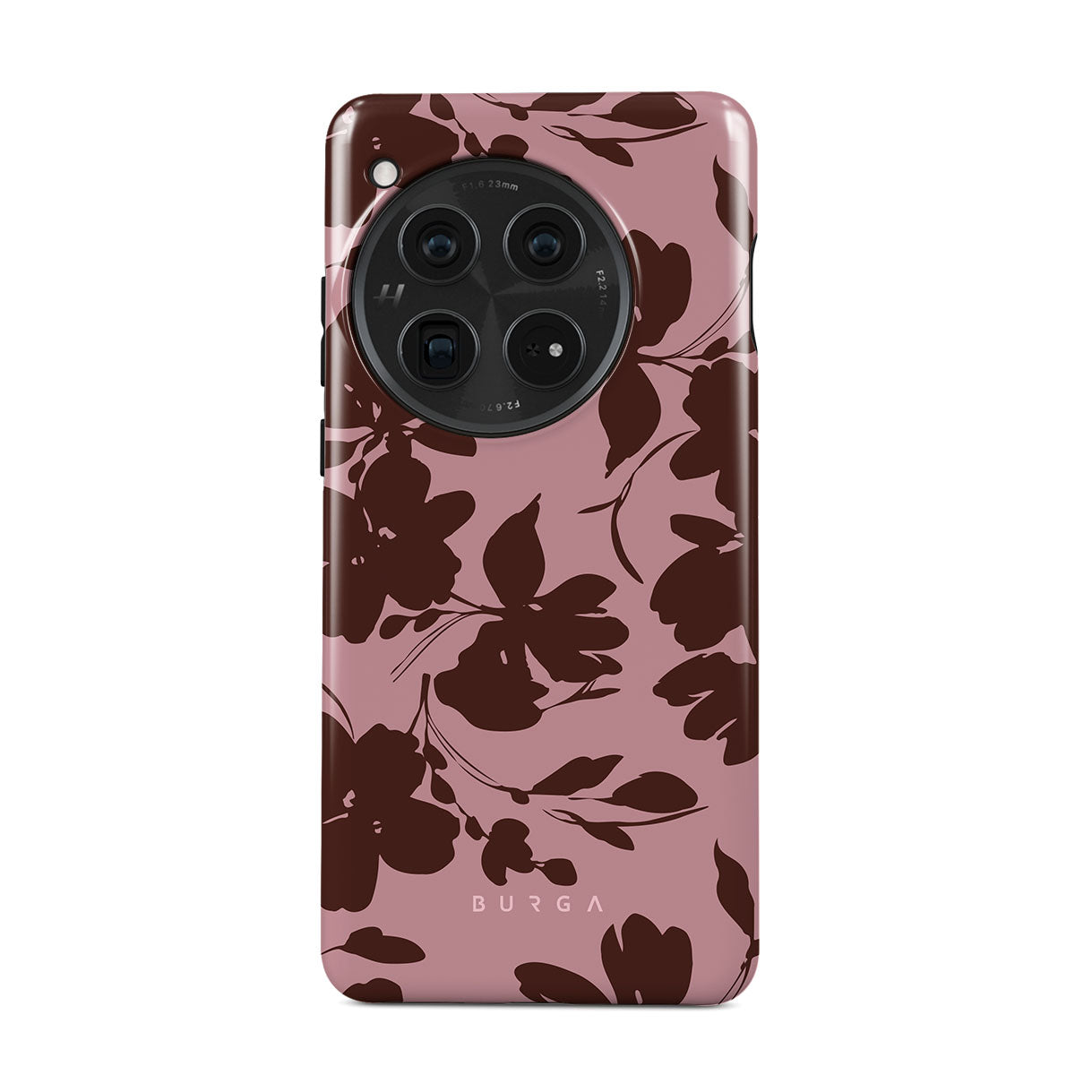 Quietly bold, our Gossip OnePlus 12 phone case design speaks volumes in subtlety. A soft rosé background, layered with deep red-brown floral accents, gives off a refined, almost mysterious vibe. It's for those who let the details do the talking.