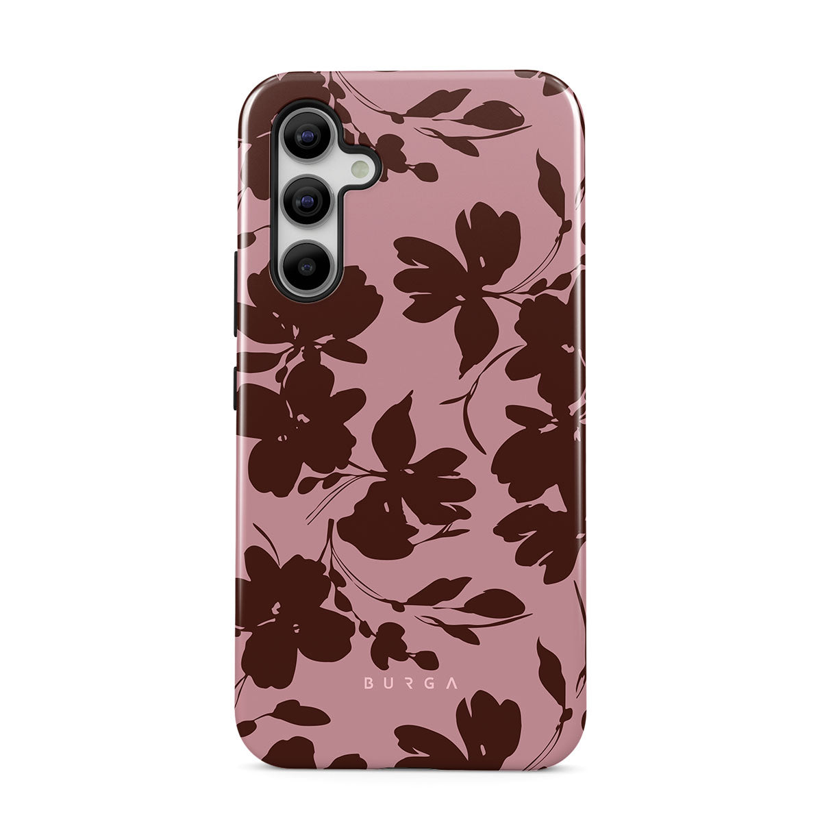 Quietly bold, our Gossip Samsung Galaxy A55 phone case design speaks volumes in subtlety. A soft rosé background, layered with deep red-brown floral accents, gives off a refined, almost mysterious vibe. It's for those who let the details do the talking.