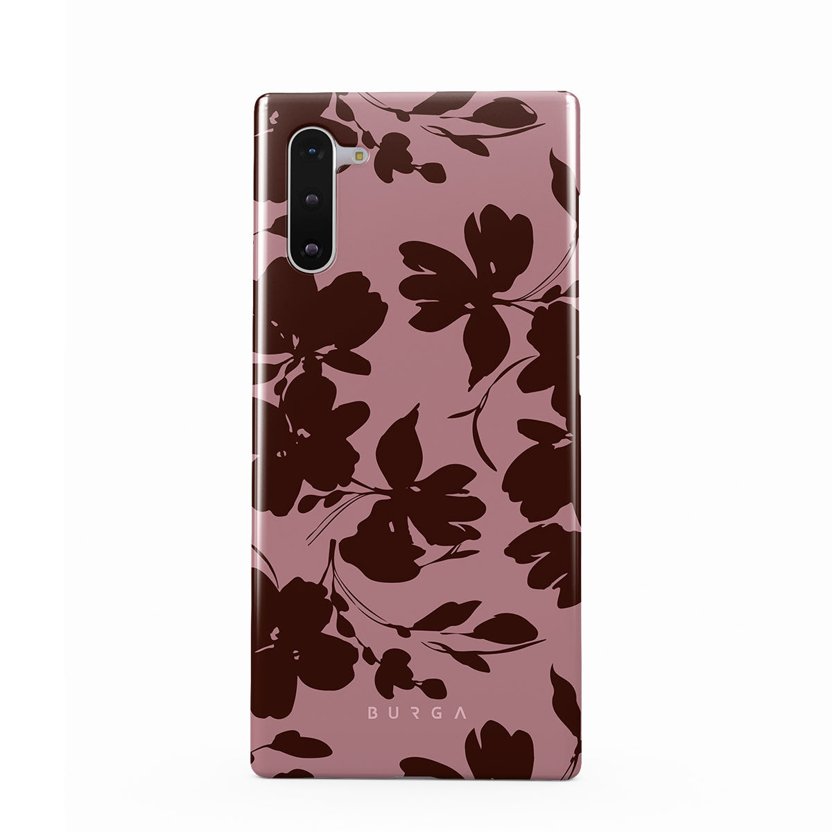 Quietly bold, our Gossip Samsung Galaxy Note 10 phone case design speaks volumes in subtlety. A soft rosé background, layered with deep red-brown floral accents, gives off a refined, almost mysterious vibe. It's for those who let the details do the talking.