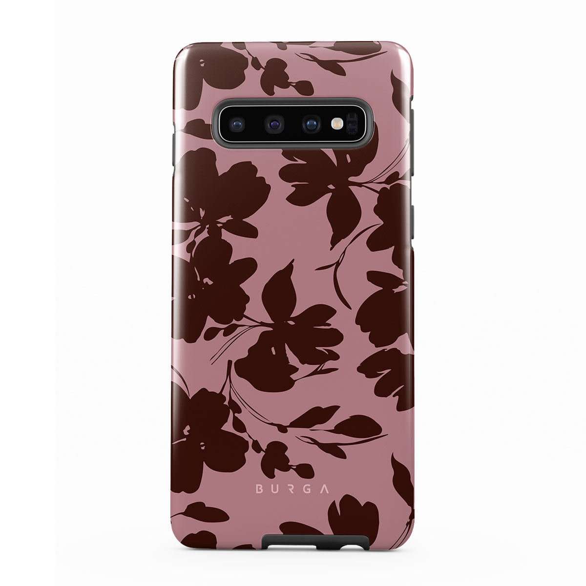 Quietly bold, our Gossip Samsung Galaxy S10 4G phone case design speaks volumes in subtlety. A soft rosé background, layered with deep red-brown floral accents, gives off a refined, almost mysterious vibe. It's for those who let the details do the talking.