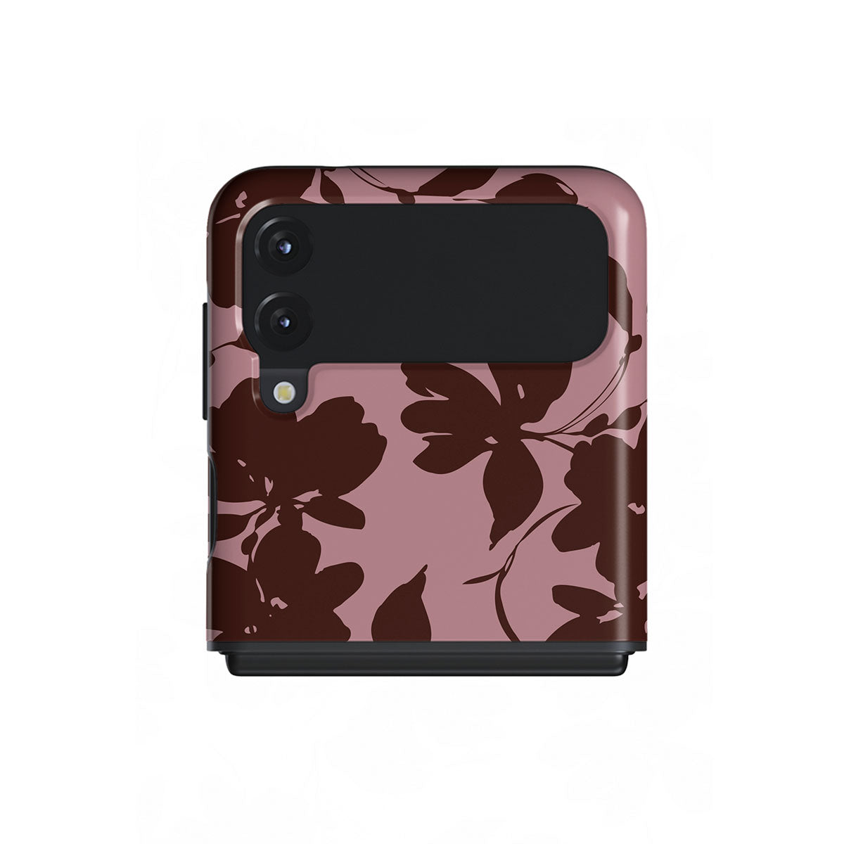 Quietly bold, our Gossip Samsung Galaxy Z Flip 3 phone case design speaks volumes in subtlety. A soft rosé background, layered with deep red-brown floral accents, gives off a refined, almost mysterious vibe. It's for those who let the details do the talking.