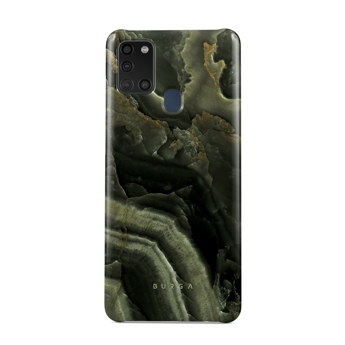 Carry the mystery of unexplored land found in an ominous misty forest with a green marble Samsung Galaxy A21s 4G phone case inspired by it. The case combines the popular marble trend with heavy-duty protection becoming a unique companion to your device.