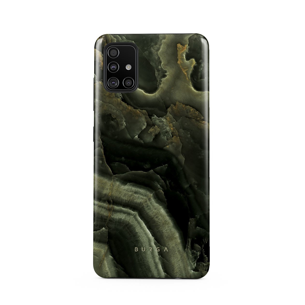 Carry the mystery of unexplored land found in an ominous misty forest with a green marble Samsung Galaxy A51 phone case inspired by it. The case combines the popular marble trend with heavy-duty protection becoming a unique companion to your device.