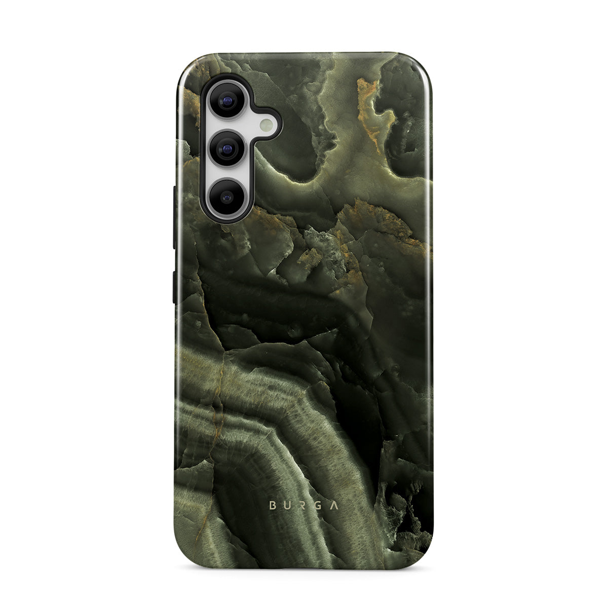 Carry the mystery of unexplored land found in an ominous misty forest with a green marble Samsung Galaxy A55 phone case inspired by it. The case combines the popular marble trend with heavy-duty protection becoming a unique companion to your device.