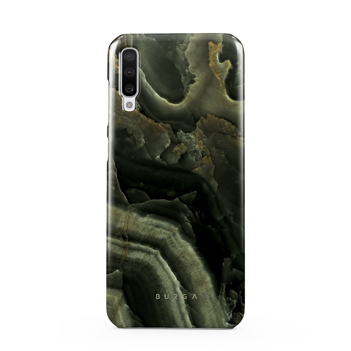 Carry the mystery of unexplored land found in an ominous misty forest with a green marble Samsung Galaxy A70 phone case inspired by it. The case combines the popular marble trend with heavy-duty protection becoming a unique companion to your device.