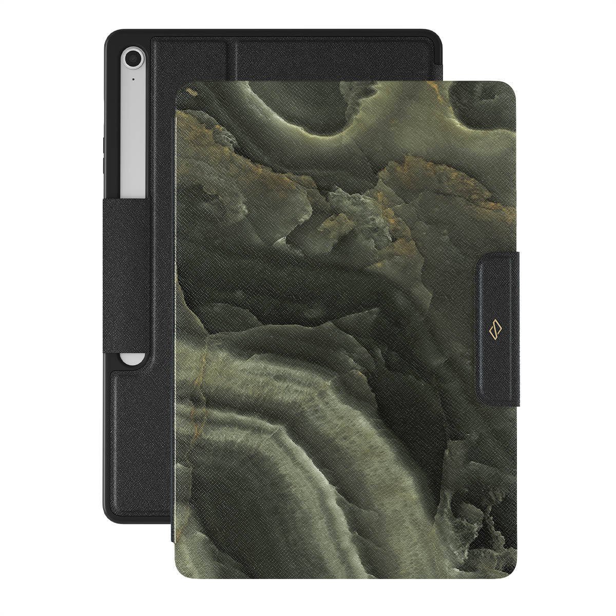 Carry the mystery of unexplored land found in an ominous misty forest with a green marble Samsung Galaxy Tab S10+ FE folio case inspired by it. The case combines the popular marble trend with heavy-duty protection becoming a unique companion to your device.