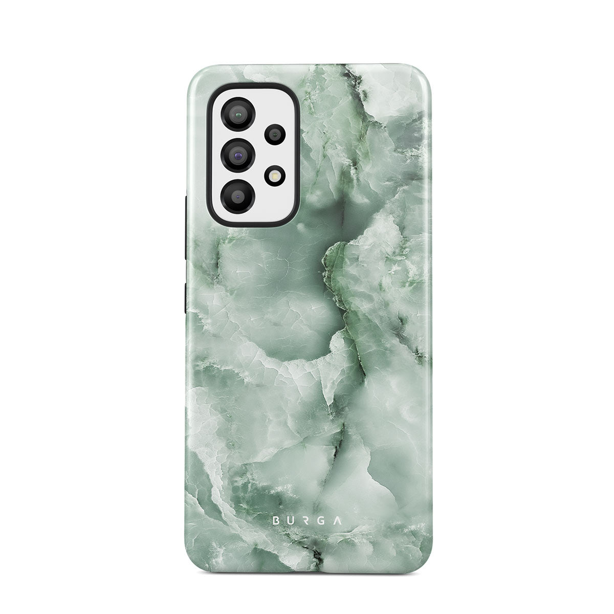 Our Pistachio Cheesecake Samsung Galaxy A23 4G / 5G phone case is inspired by the soft green color of pistachios. The marble pattern never goes out of style, and reimagined design with pastel green and white swirls offers a designer feel. Such a hard-shell case will provide heavy-duty protection while adding a touch of pastel to your collection.