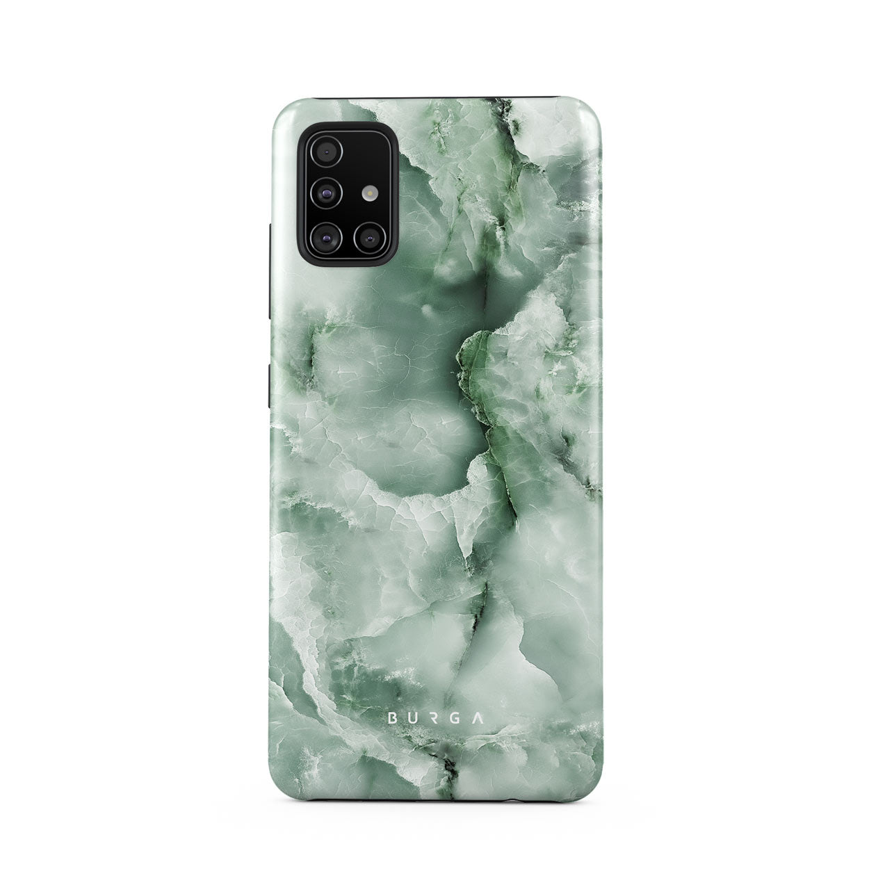Our Pistachio Cheesecake Samsung Galaxy A71 phone case is inspired by the soft green color of pistachios. The marble pattern never goes out of style, and reimagined design with pastel green and white swirls offers a designer feel. Such a hard-shell case will provide heavy-duty protection while adding a touch of pastel to your collection.