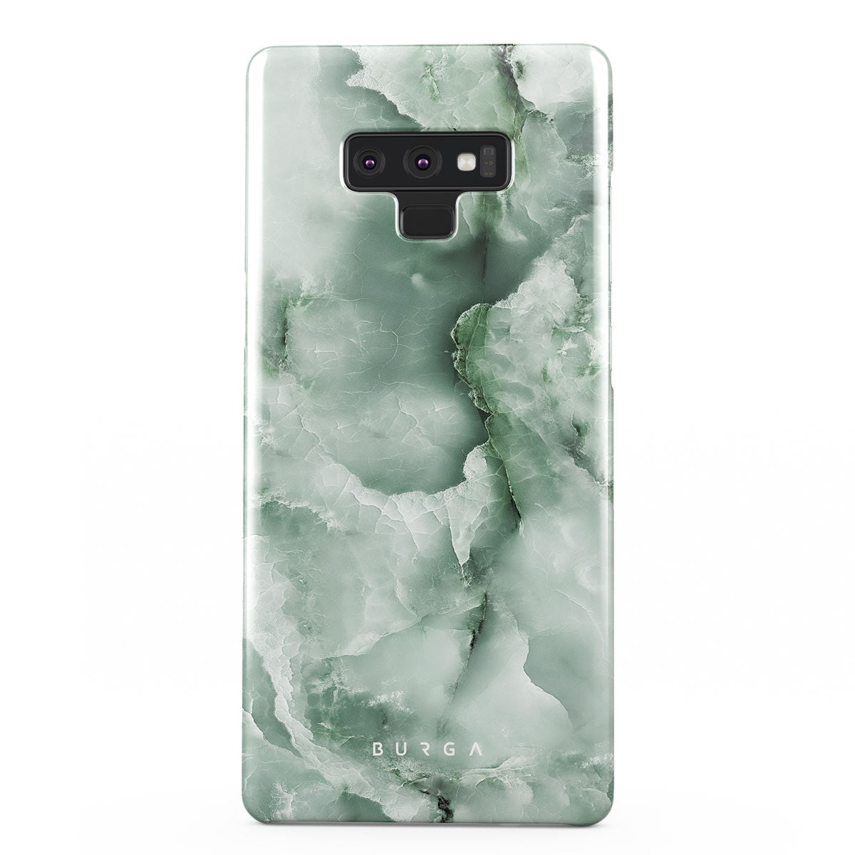Our Pistachio Cheesecake Samsung Galaxy Note 9 phone case is inspired by the soft green color of pistachios. The marble pattern never goes out of style, and reimagined design with pastel green and white swirls offers a designer feel. Such a hard-shell case will provide heavy-duty protection while adding a touch of pastel to your collection.