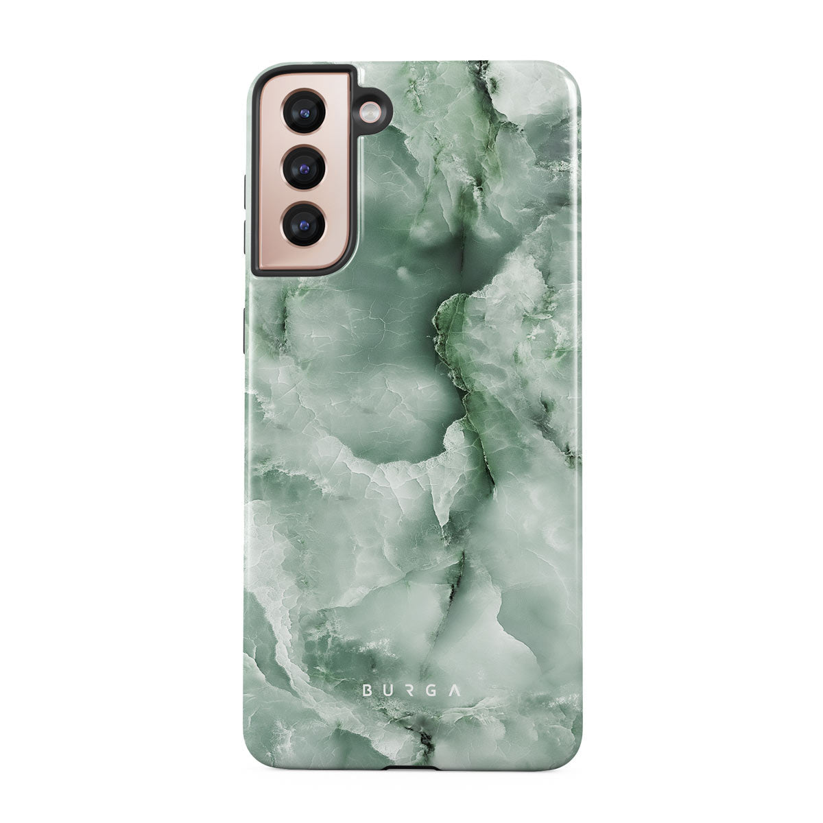 Our Pistachio Cheesecake Samsung Galaxy S21 Plus phone case is inspired by the soft green color of pistachios. The marble pattern never goes out of style, and reimagined design with pastel green and white swirls offers a designer feel. Such a hard-shell case will provide heavy-duty protection while adding a touch of pastel to your collection.