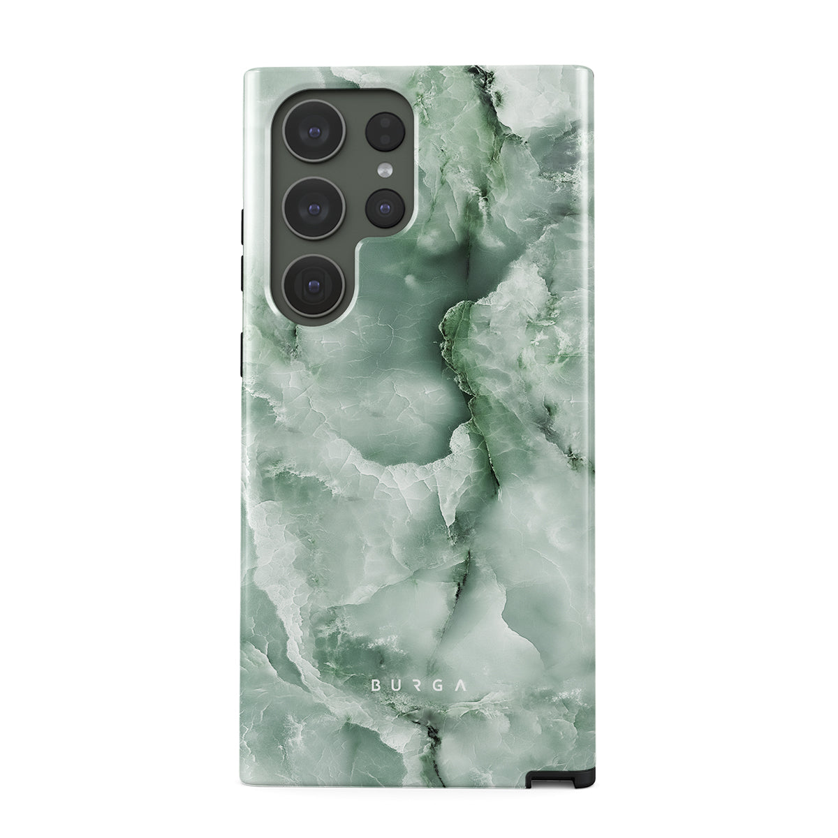 Our Pistachio Cheesecake Samsung Galaxy S23 Ultra phone case is inspired by the soft green color of pistachios. The marble pattern never goes out of style, and reimagined design with pastel green and white swirls offers a designer feel. Such a hard-shell case will provide heavy-duty protection while adding a touch of pastel to your collection.