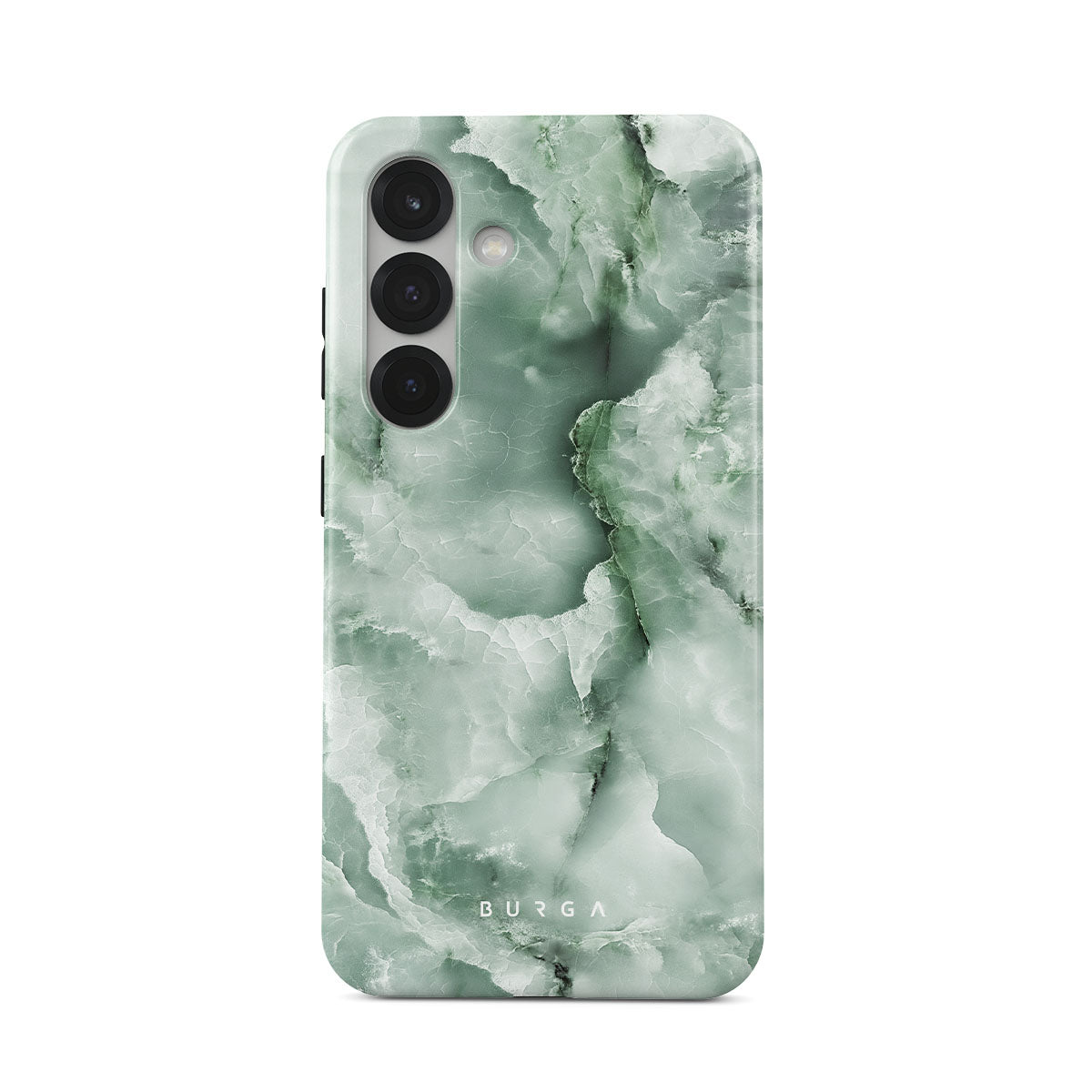 Our Pistachio Cheesecake Samsung Galaxy S25 Plus phone case is inspired by the soft green color of pistachios. The marble pattern never goes out of style, and reimagined design with pastel green and white swirls offers a designer feel. Such a hard-shell case will provide heavy-duty protection while adding a touch of pastel to your collection.