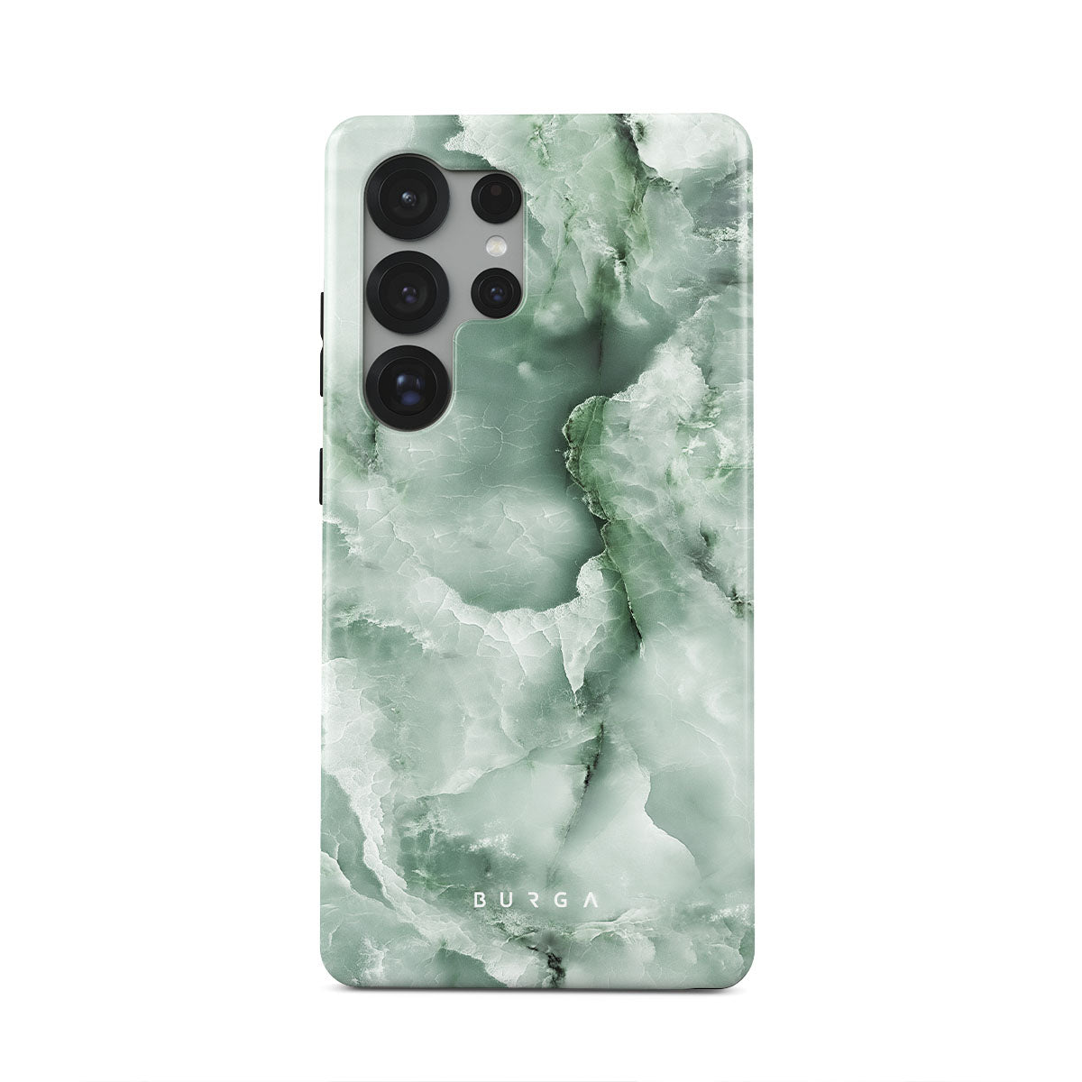 Our Pistachio Cheesecake Samsung Galaxy S25 Ultra phone case is inspired by the soft green color of pistachios. The marble pattern never goes out of style, and reimagined design with pastel green and white swirls offers a designer feel. Such a hard-shell case will provide heavy-duty protection while adding a touch of pastel to your collection.