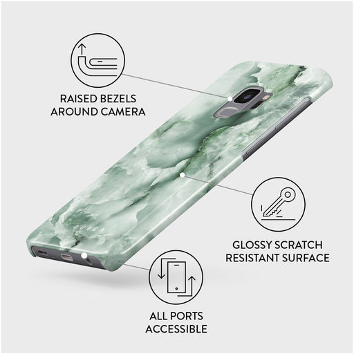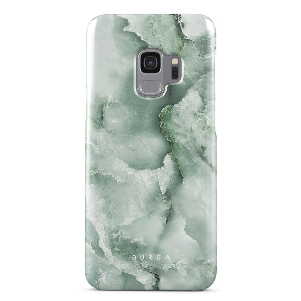 Our Pistachio Cheesecake Samsung Galaxy S9 phone case is inspired by the soft green color of pistachios. The marble pattern never goes out of style, and reimagined design with pastel green and white swirls offers a designer feel. Such a hard-shell case will provide heavy-duty protection while adding a touch of pastel to your collection.