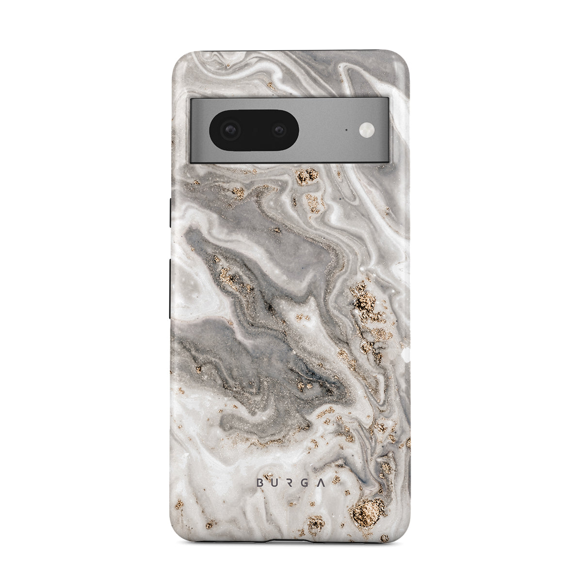 The wind outside is playing his songs. Some fear, some love, and some simply enjoy. But do not be afraid, with our grey marble Google Pixel 7 phone case inspired by a beautiful snowstorm, you can have the pretty part of it without any coldness. And as the case offers heavy-duty protection, your phone will also be safe and sound!