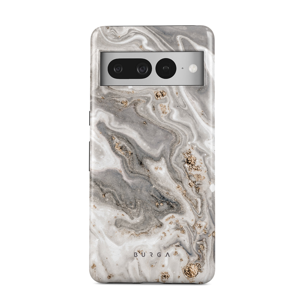 The wind outside is playing his songs. Some fear, some love, and some simply enjoy. But do not be afraid, with our grey marble Google Pixel 7 Pro phone case inspired by a beautiful snowstorm, you can have the pretty part of it without any coldness. And as the case offers heavy-duty protection, your phone will also be safe and sound!