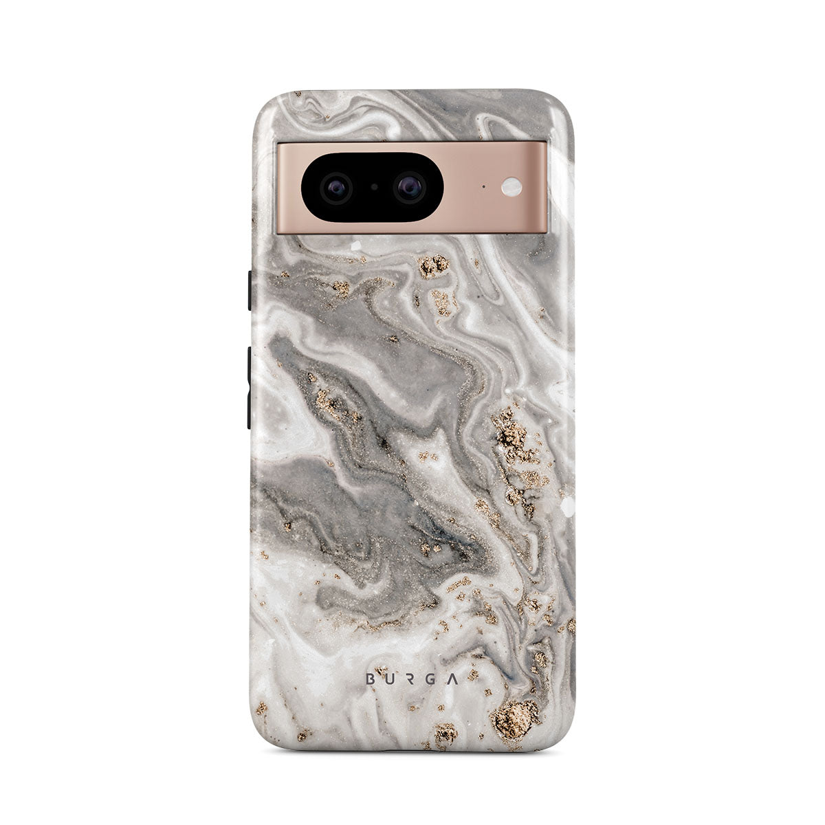 The wind outside is playing his songs. Some fear, some love, and some simply enjoy. But do not be afraid, with our grey marble Google Pixel 8 phone case inspired by a beautiful snowstorm, you can have the pretty part of it without any coldness. And as the case offers heavy-duty protection, your phone will also be safe and sound!