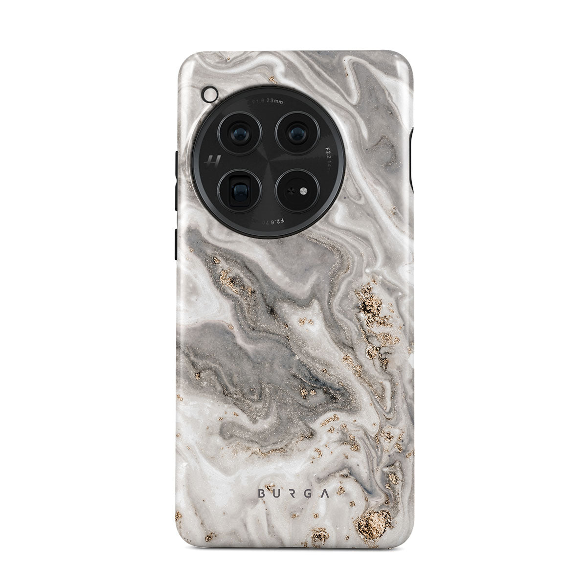 The wind outside is playing his songs. Some fear, some love, and some simply enjoy. But do not be afraid, with our grey marble OnePlus 12 phone case inspired by a beautiful snowstorm, you can have the pretty part of it without any coldness. And as the case offers heavy-duty protection, your phone will also be safe and sound!