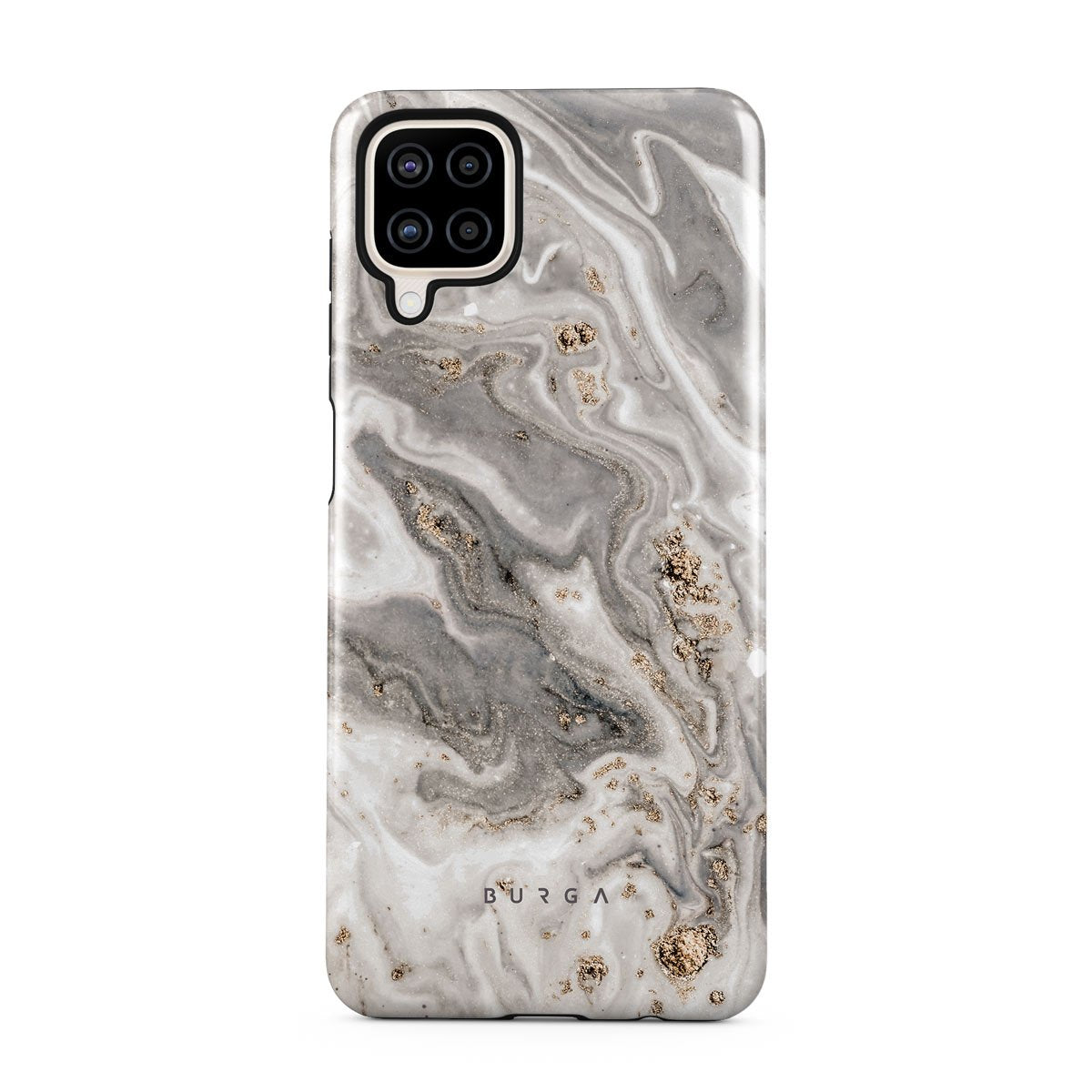 The wind outside is playing his songs. Some fear, some love, and some simply enjoy. But do not be afraid, with our grey marble Samsung Galaxy A12 4G phone case inspired by a beautiful snowstorm, you can have the pretty part of it without any coldness. And as the case offers heavy-duty protection, your phone will also be safe and sound!