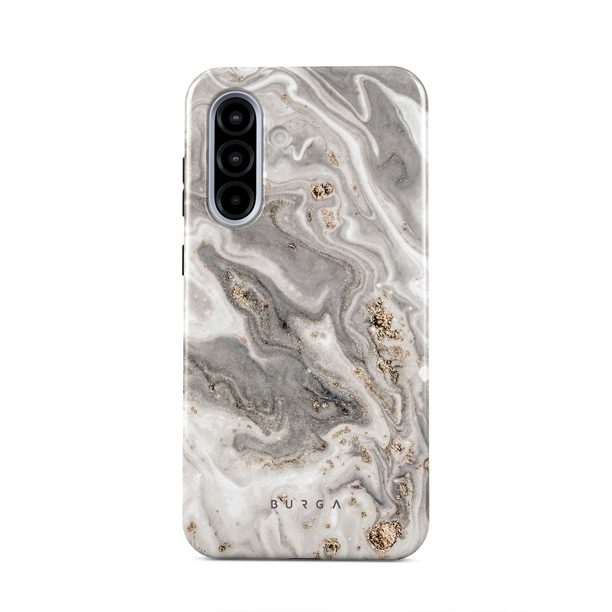 The wind outside is playing his songs. Some fear, some love, and some simply enjoy. But do not be afraid, with our grey marble Samsung Galaxy A36 5G phone case inspired by a beautiful snowstorm, you can have the pretty part of it without any coldness. And as the case offers heavy-duty protection, your phone will also be safe and sound!