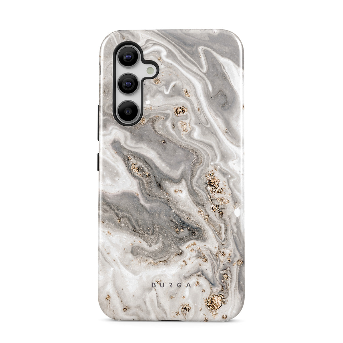 The wind outside is playing his songs. Some fear, some love, and some simply enjoy. But do not be afraid, with our grey marble Samsung Galaxy A55 phone case inspired by a beautiful snowstorm, you can have the pretty part of it without any coldness. And as the case offers heavy-duty protection, your phone will also be safe and sound!