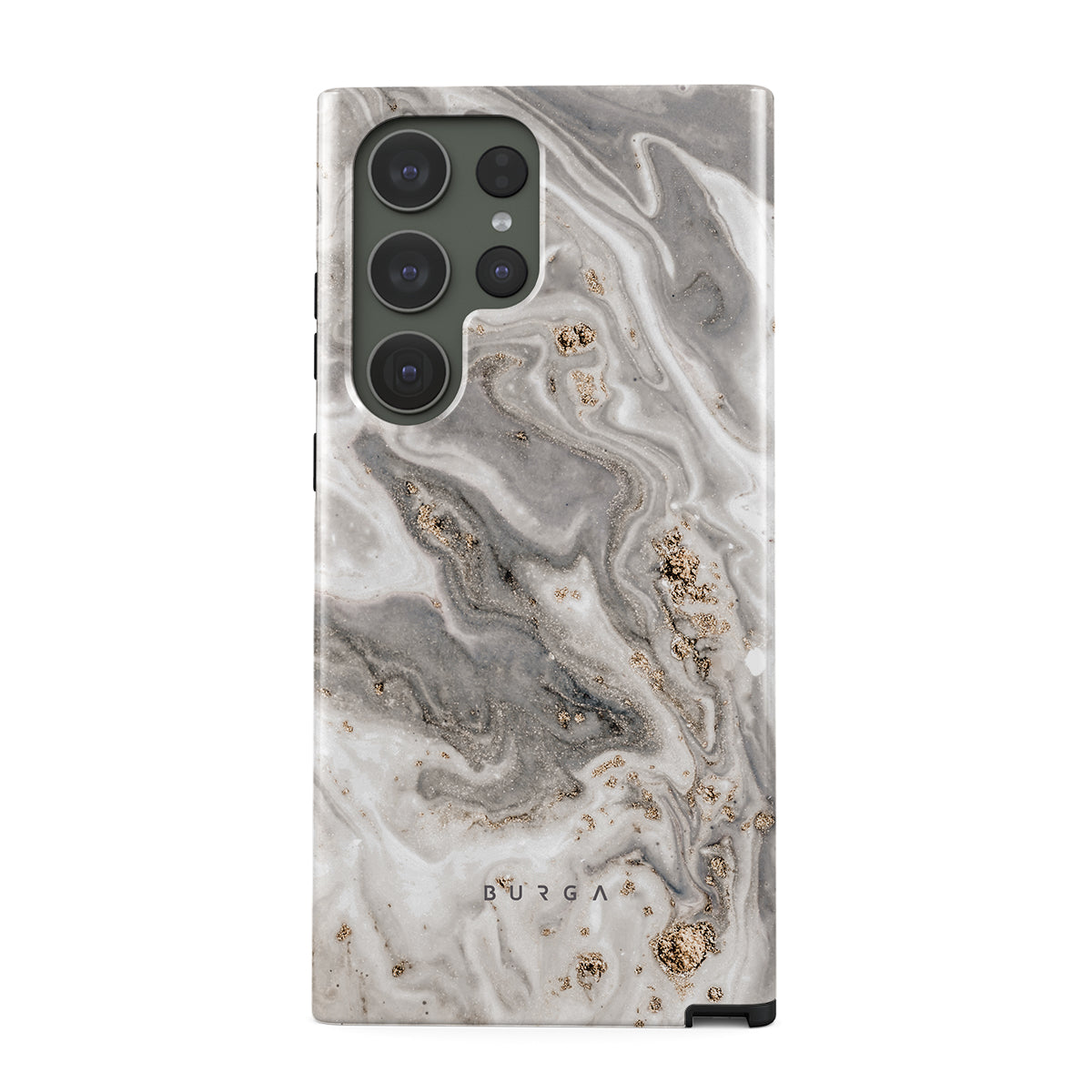 The wind outside is playing his songs. Some fear, some love, and some simply enjoy. But do not be afraid, with our grey marble Samsung Galaxy S23 Ultra phone case inspired by a beautiful snowstorm, you can have the pretty part of it without any coldness. And as the case offers heavy-duty protection, your phone will also be safe and sound!