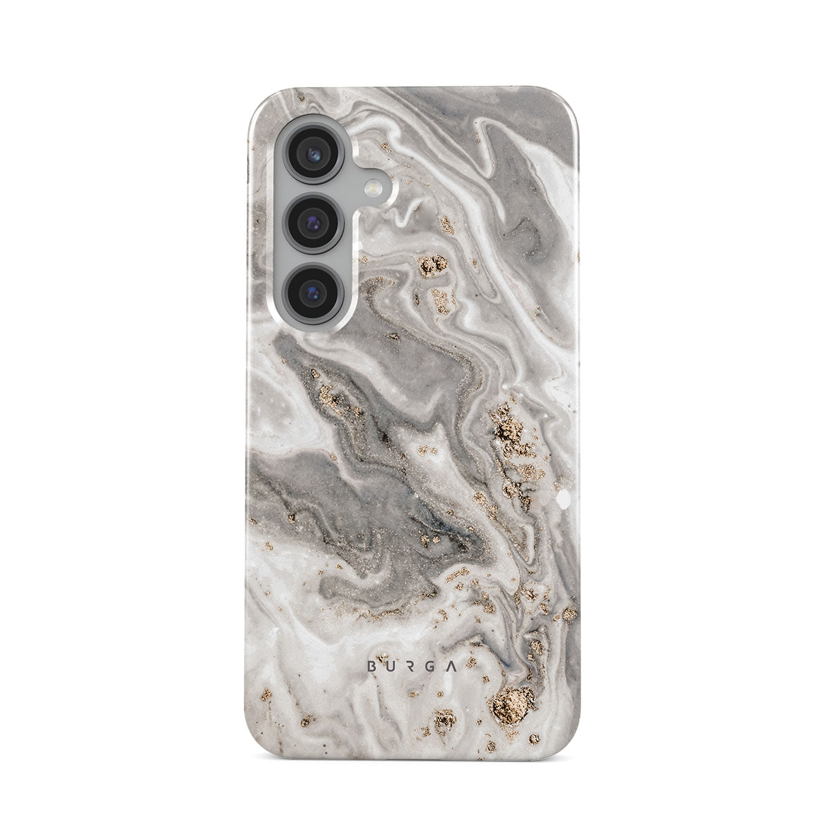 The wind outside is playing his songs. Some fear, some love, and some simply enjoy. But do not be afraid, with our grey marble Samsung Galaxy S24 phone case inspired by a beautiful snowstorm, you can have the pretty part of it without any coldness. And as the case offers heavy-duty protection, your phone will also be safe and sound!