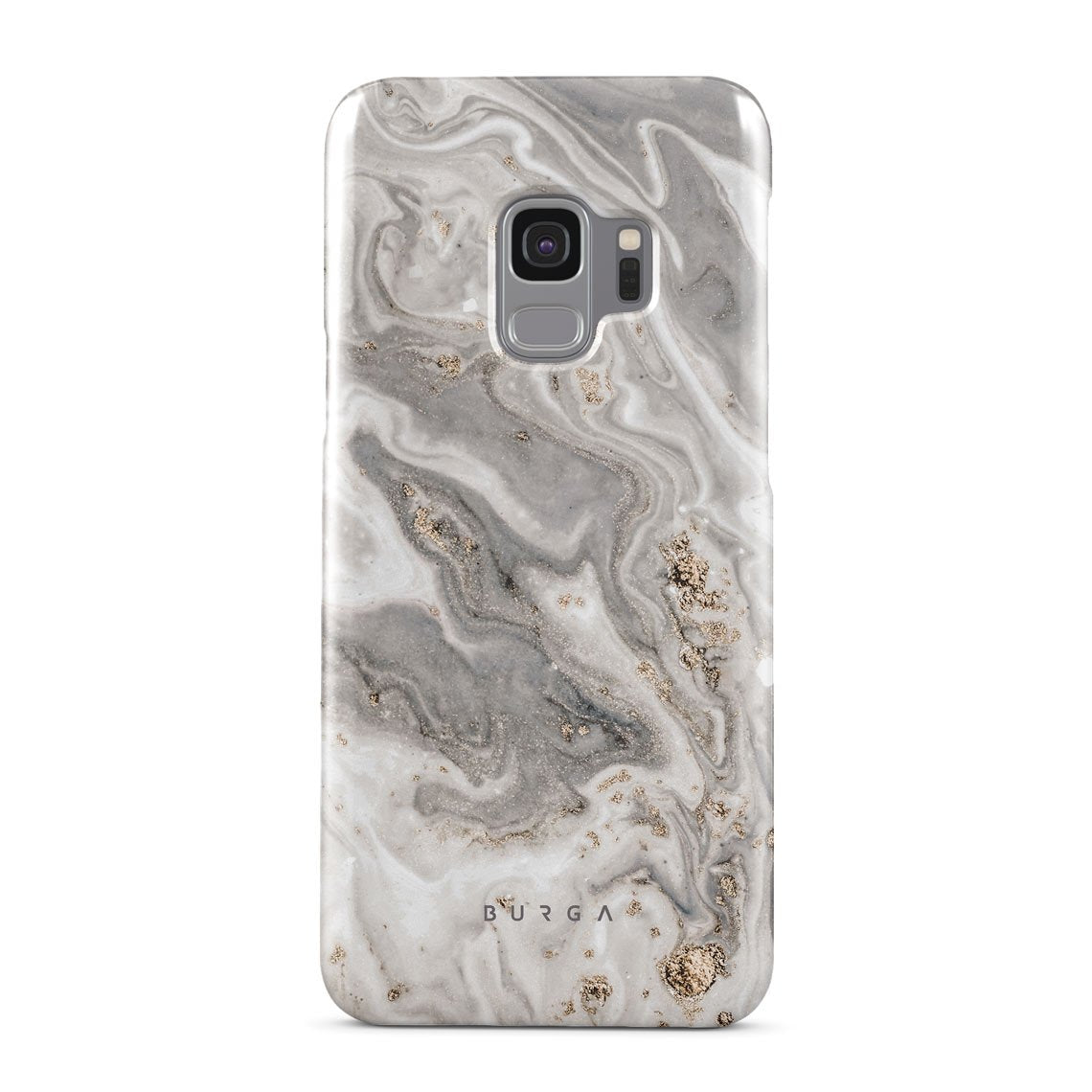 The wind outside is playing his songs. Some fear, some love, and some simply enjoy. But do not be afraid, with our grey marble Samsung Galaxy S9 phone case inspired by a beautiful snowstorm, you can have the pretty part of it without any coldness. And as the case offers heavy-duty protection, your phone will also be safe and sound!