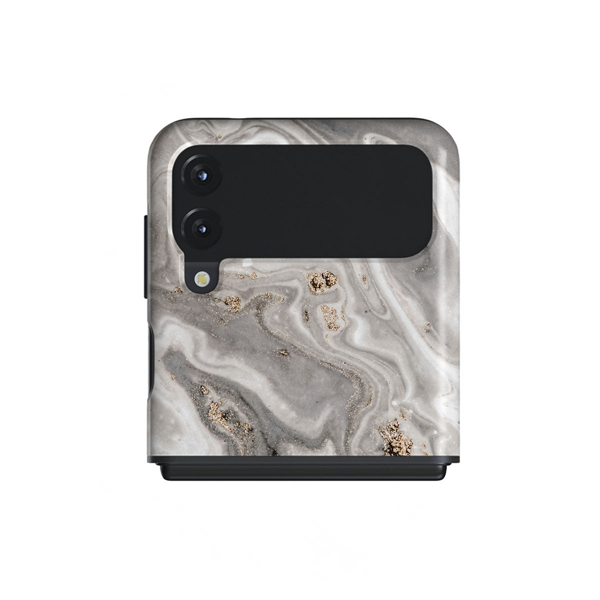 The wind outside is playing his songs. Some fear, some love, and some simply enjoy. But do not be afraid, with our grey marble Samsung Galaxy Z Flip 3 phone case inspired by a beautiful snowstorm, you can have the pretty part of it without any coldness. And as the case offers heavy-duty protection, your phone will also be safe and sound!