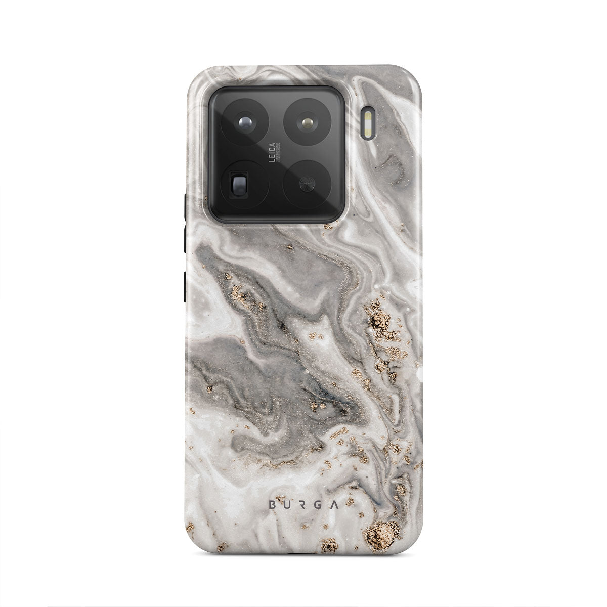 The wind outside is playing his songs. Some fear, some love, and some simply enjoy. But do not be afraid, with our grey marbleXiaomi 15 Pro phone case inspired by a beautiful snowstorm, you can have the pretty part of it without any coldness. And as the case offers heavy-duty protection, your phone will also be safe and sound!