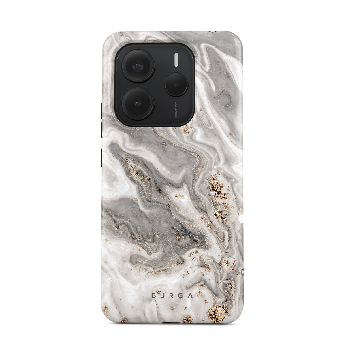 The wind outside is playing his songs. Some fear, some love, and some simply enjoy. But do not be afraid, with our grey marble Xiaomi Redmi Note 14 5G phone case inspired by a beautiful snowstorm, you can have the pretty part of it without any coldness. And as the case offers heavy-duty protection, your phone will also be safe and sound!