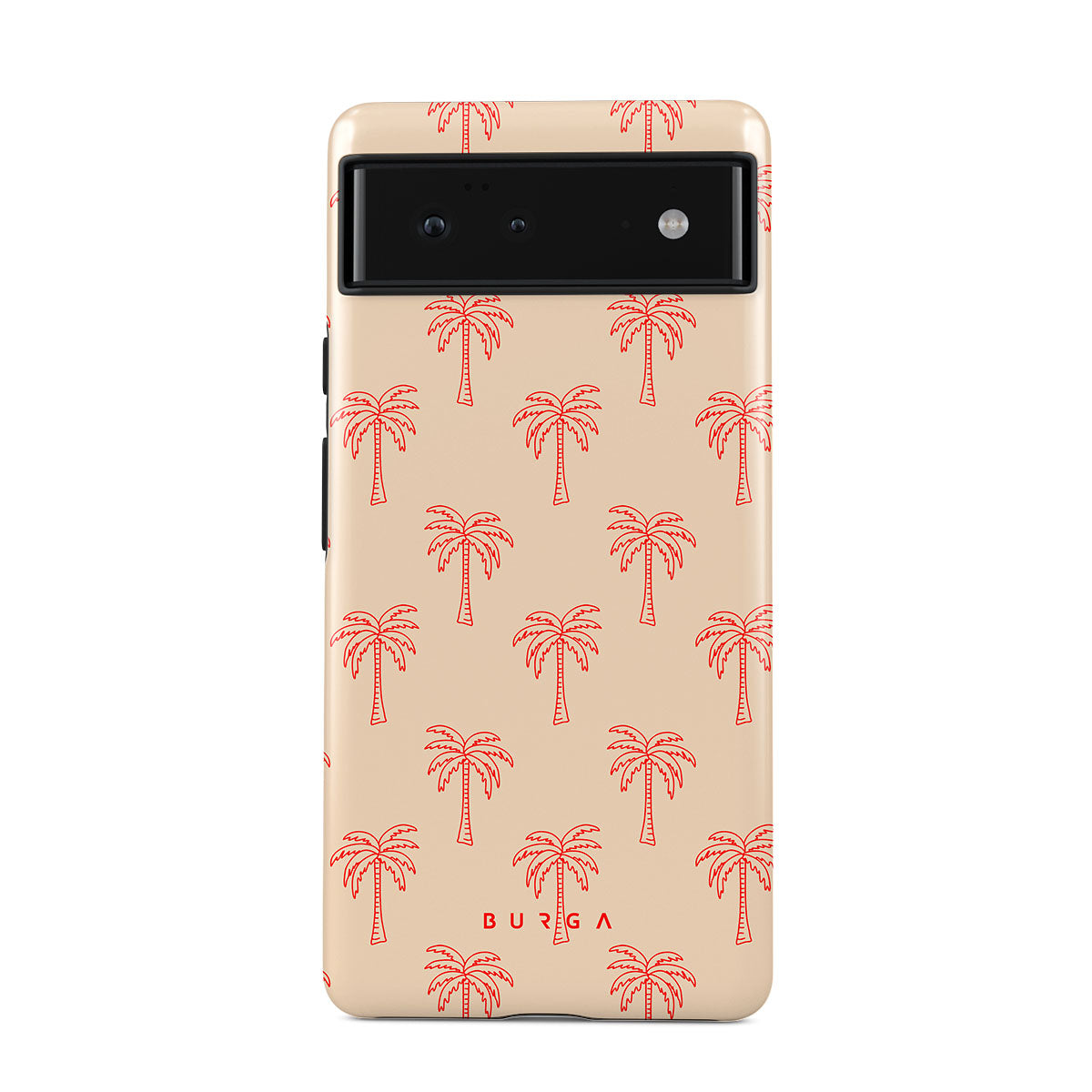 Retreat into the serene whispers of our Happy Hour design. Gentle pink palms sway on a soothing blush background, creating images of a tranquil paradise. This Google Pixel 6 phone case is perfect for dreamers and nature lovers who seek a daily escape into tranquility.