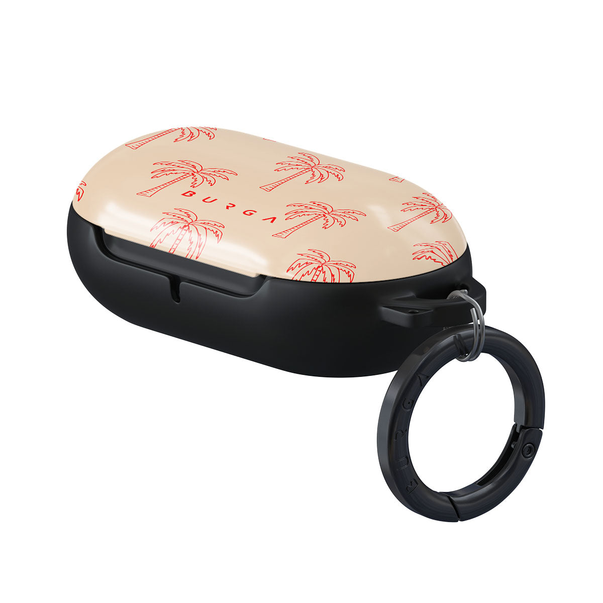 Retreat into the serene whispers of our Happy Hour design. Gentle pink palms sway on a soothing blush background, creating images of a tranquil paradise. This Samsung Galaxy Buds case cover is perfect for dreamers and nature lovers who seek a daily escape into tranquility.