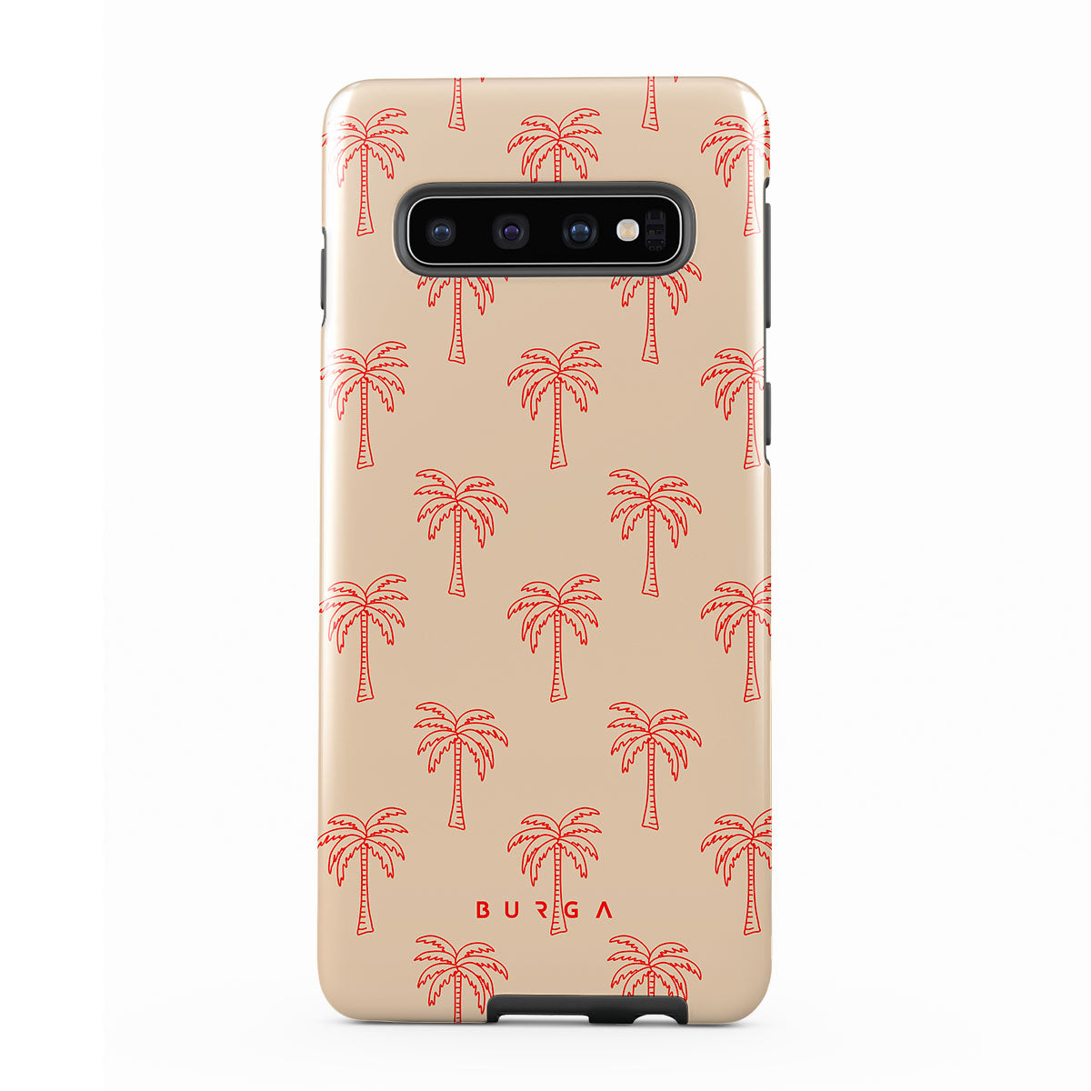 Retreat into the serene whispers of our Happy Hour design. Gentle pink palms sway on a soothing blush background, creating images of a tranquil paradise. This Samsung Galaxy S10 4G phone case is perfect for dreamers and nature lovers who seek a daily escape into tranquility.