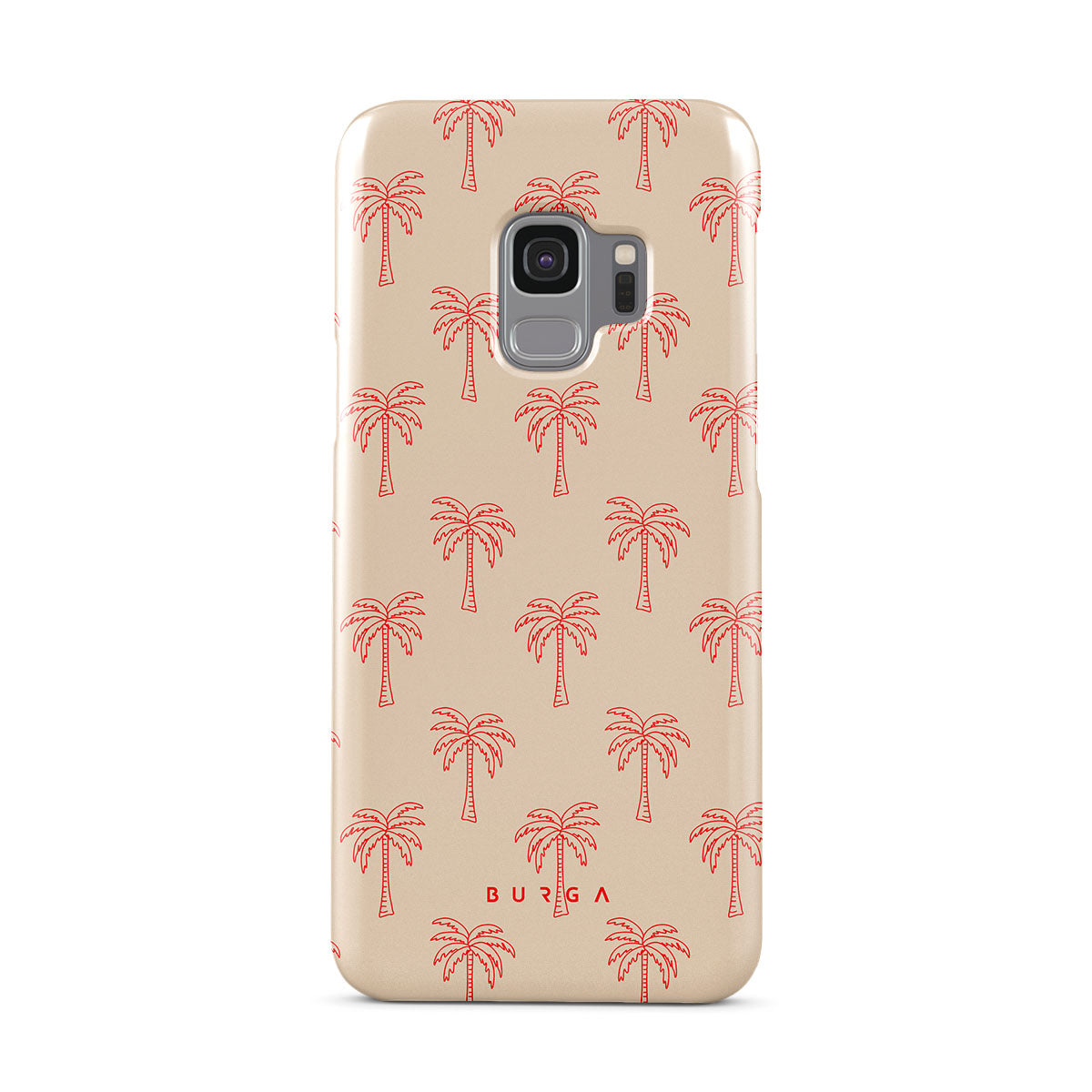 Retreat into the serene whispers of our Happy Hour design. Gentle pink palms sway on a soothing blush background, creating images of a tranquil paradise. This Samsung Galaxy S9 phone case is perfect for dreamers and nature lovers who seek a daily escape into tranquility.