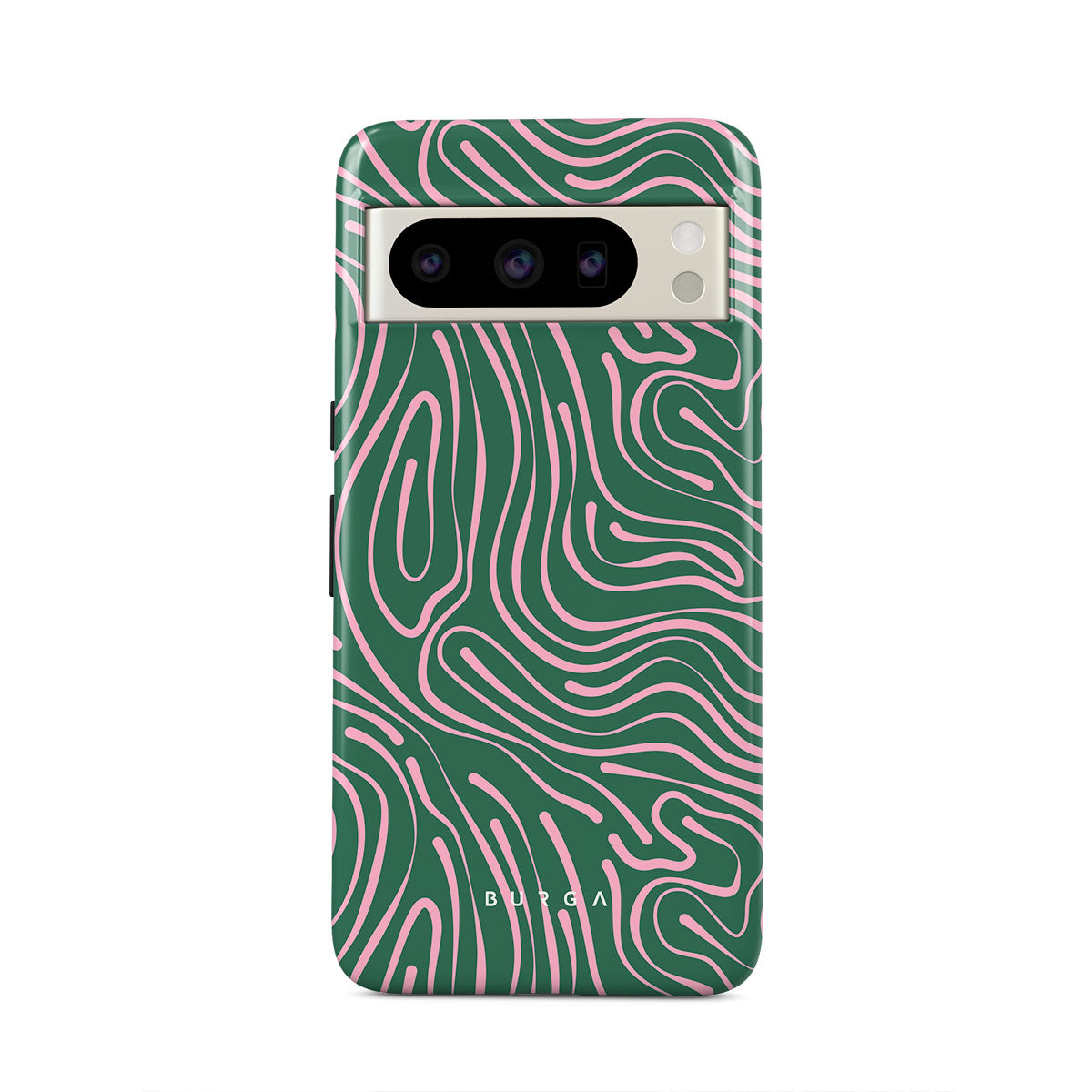 Fresh and mesmerizing, our Hawaiian Breeze Google Pixel 8 Pro phone case design combines a pastel pink wavy pattern with a crisp green background creating a refreshing look. The abstract pattern will indeed become a star in your accessorizing game, while the phone case will keep your device protected at all times!