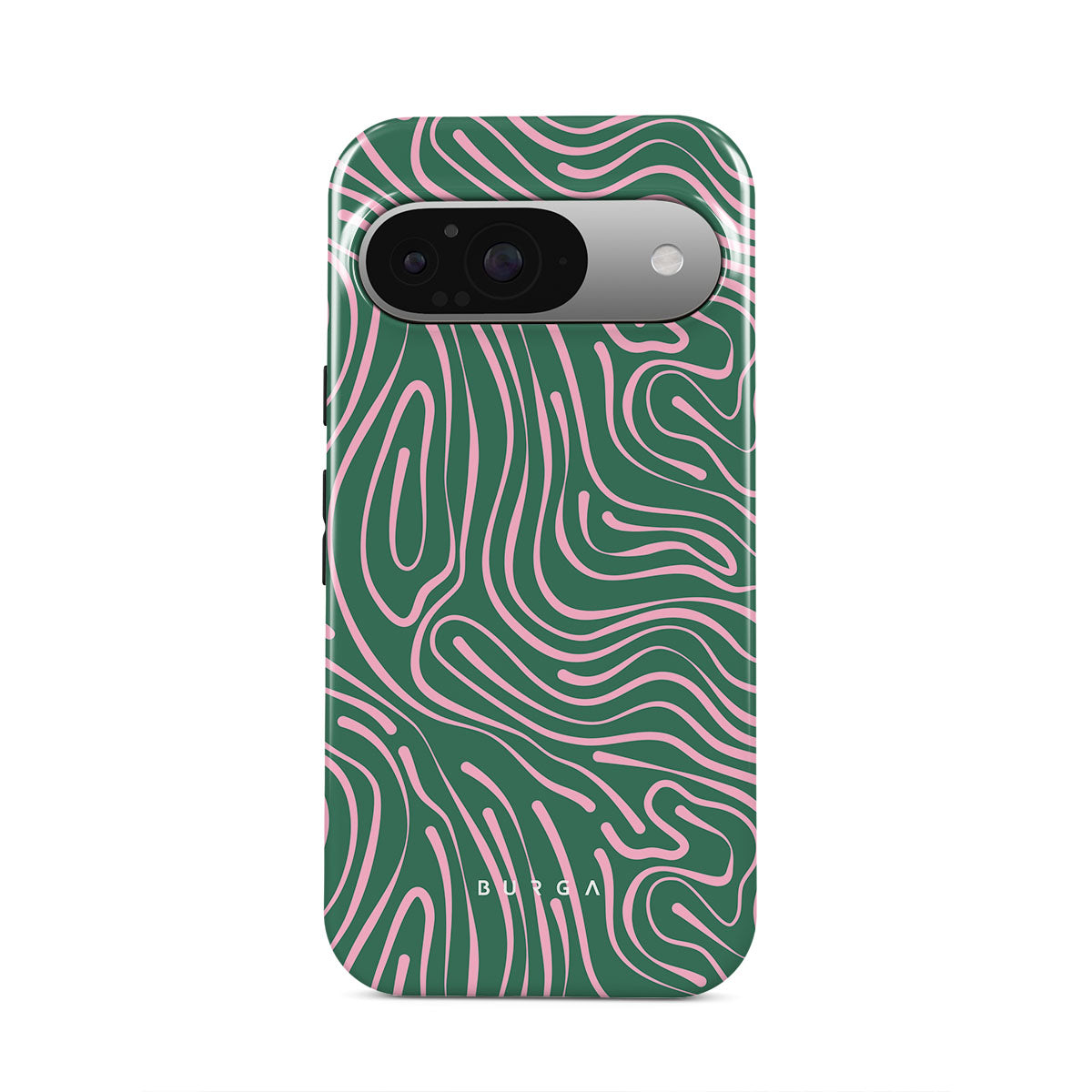 Fresh and mesmerizing, our Hawaiian Breeze Google Pixel 9 phone case design combines a pastel pink wavy pattern with a crisp green background creating a refreshing look. The abstract pattern will indeed become a star in your accessorizing game, while the phone case will keep your device protected at all times!