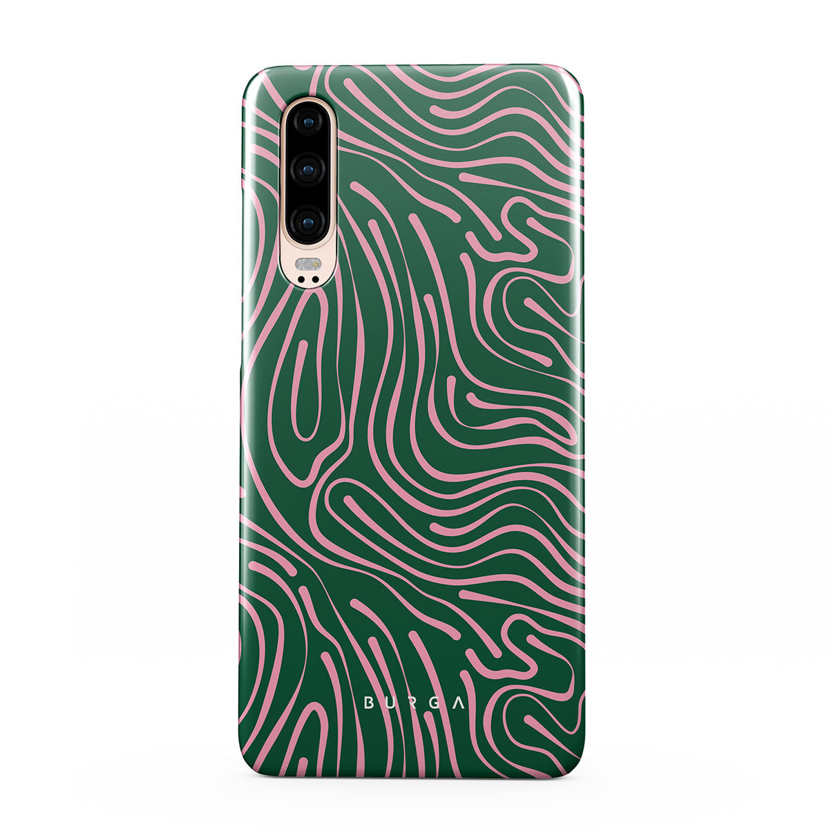 Fresh and mesmerizing, our Hawaiian Breeze Huawei P30 phone case design combines a pastel pink wavy pattern with a crisp green background creating a refreshing look. The abstract pattern will indeed become a star in your accessorizing game, while the phone case will keep your device protected at all times!