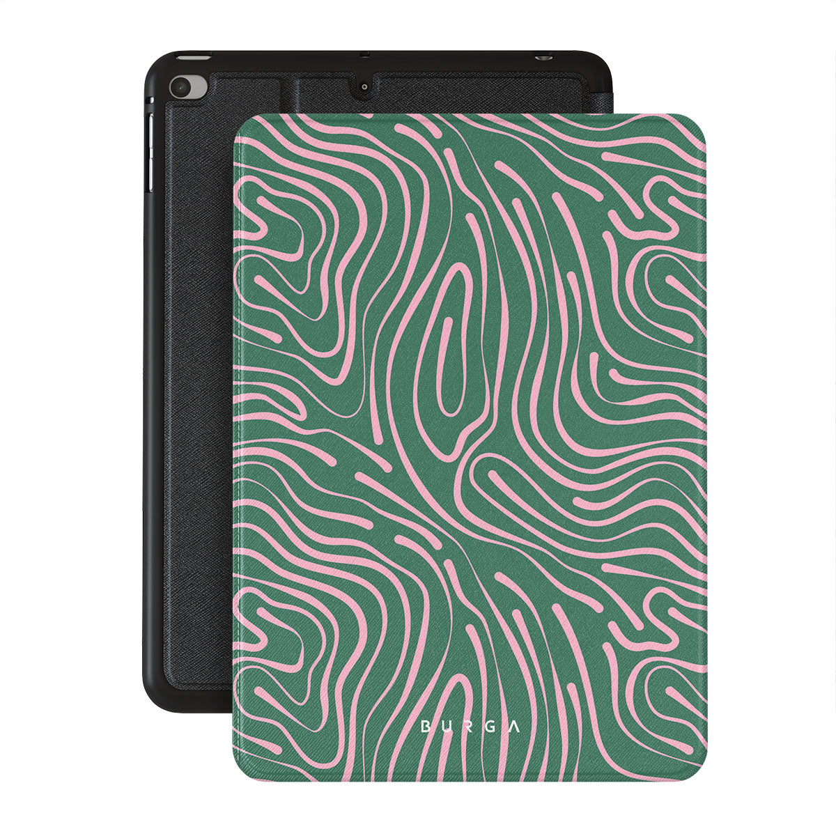 Fresh and mesmerizing, our Hawaiian Breeze iPad Mini 7.9 (5th Gen) folio case design combines a pastel pink wavy pattern with a crisp green background creating a refreshing look. The abstract pattern will indeed become a star in your accessorizing game, while the iPad case will keep your device protected at all times!
