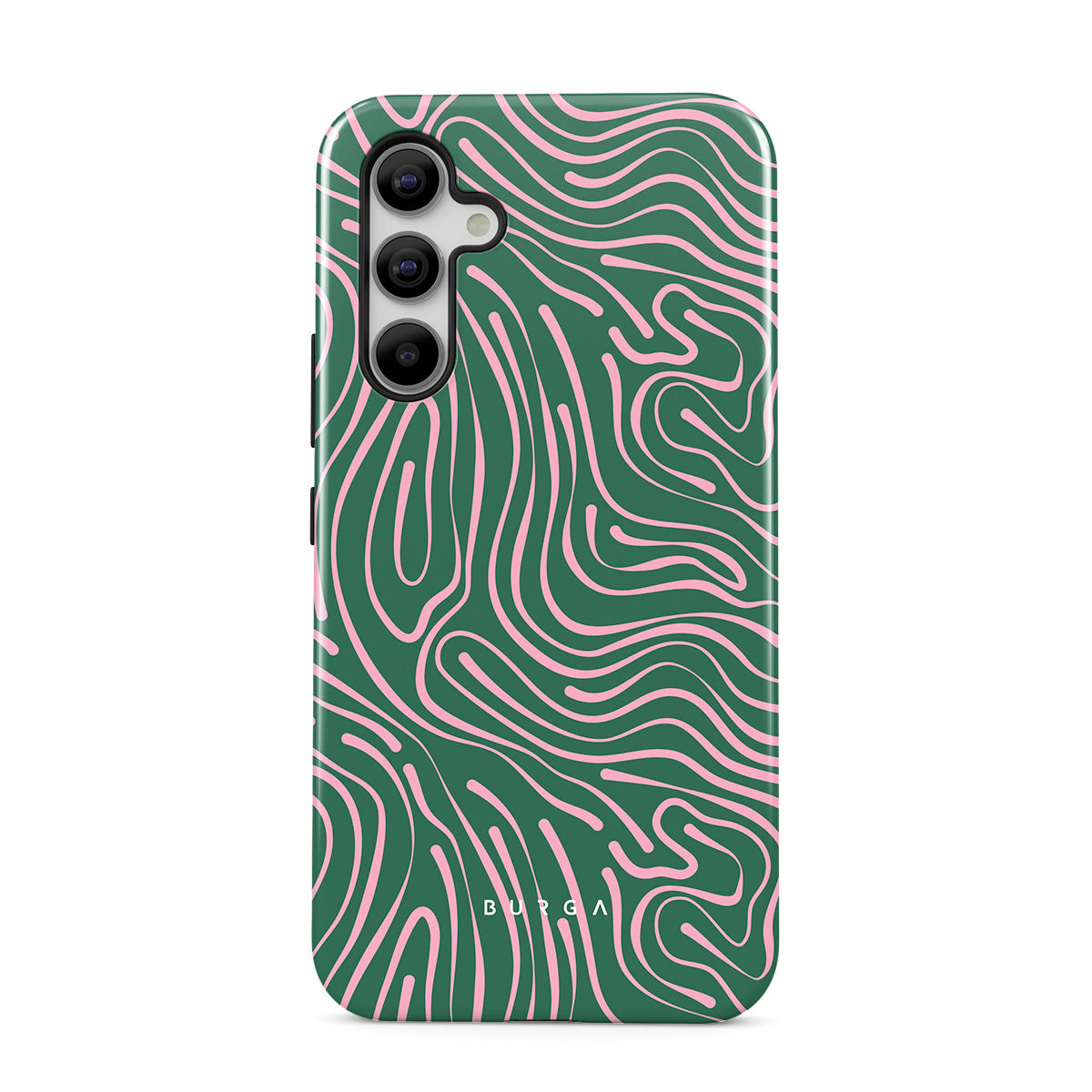 Fresh and mesmerizing, our Hawaiian Breeze Samsung Galaxy A54 phone case design combines a pastel pink wavy pattern with a crisp green background creating a refreshing look. The abstract pattern will indeed become a star in your accessorizing game, while the phone case will keep your device protected at all times!