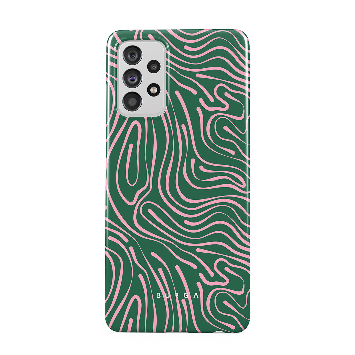 Fresh and mesmerizing, our Hawaiian Breeze Samsung Galaxy A72 4G / 5G phone case design combines a pastel pink wavy pattern with a crisp green background creating a refreshing look. The abstract pattern will indeed become a star in your accessorizing game, while the phone case will keep your device protected at all times!
