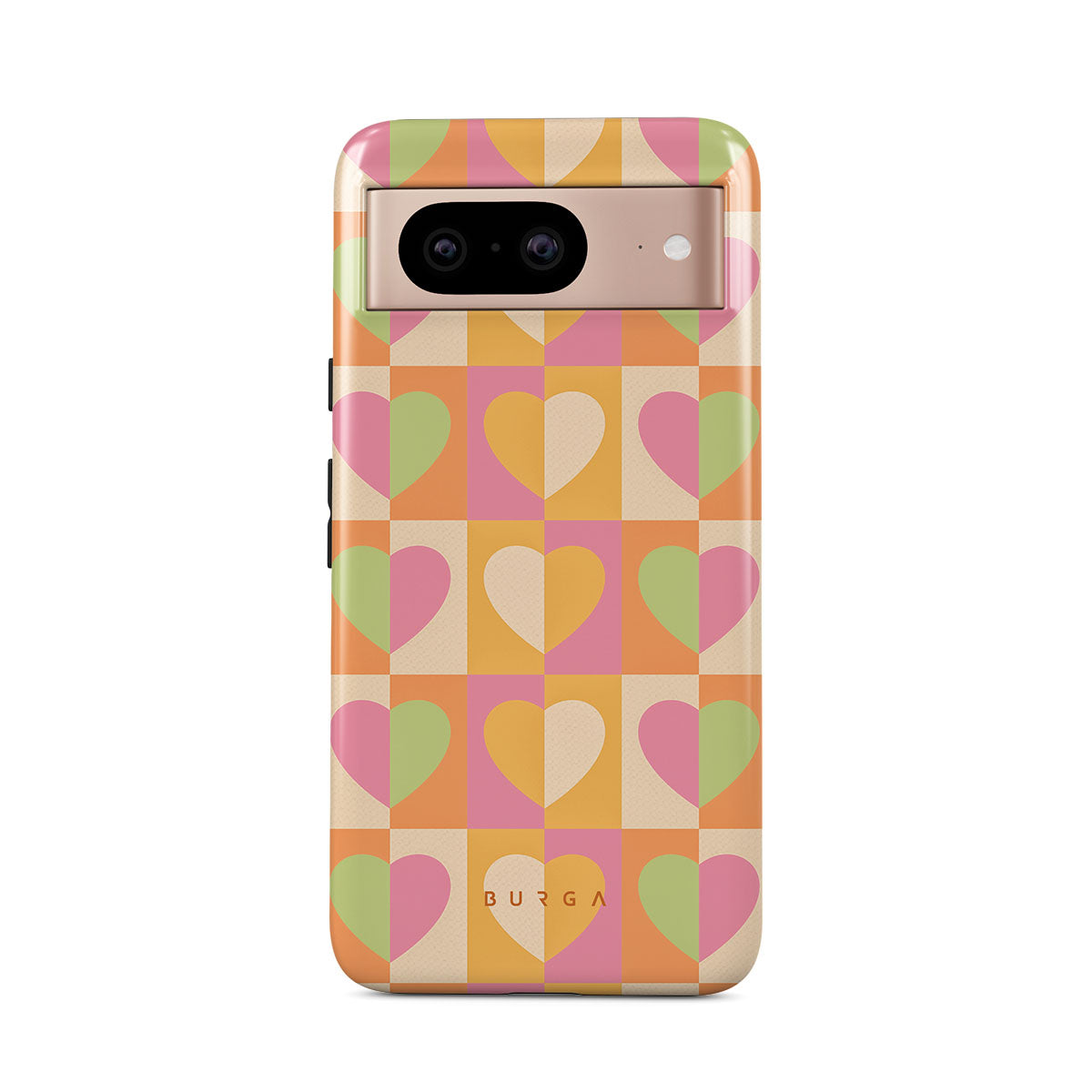 Beautifully geometrical and lovable Summer Love Google Pixel 8 phone case combines a soft pastel color scheme with a playful square heart pattern. Adding a touch of love to your style was never easier! Keep your phone as safe as you keep your heart in a cheeky checkered protective phone case!