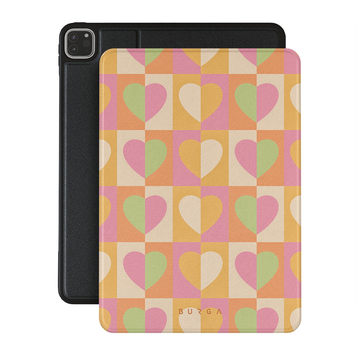 Beautifully geometrical and lovable Summer Love {iPad Model} iPad Pro 12.9 (6th/5th Gen) folio case combines a soft pastel color scheme with a playful square heart pattern. Adding a touch of love to your style was never easier! Keep your iPad as safe as you keep your heart in a cheeky checkered protective iPad case!