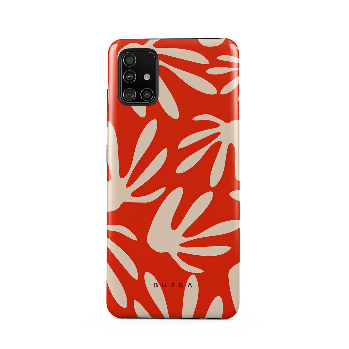Unfolding the untamed allure of a summer sunset, this design boasts a vivid red background that sets your spirit of adventure aflame. Sprinkled across this fierce backdrop, lines of radiance dance playfully. Experience the warmth of passion and the sparkle of joy in the palm of your hand with our Heatwave Samsung Galaxy A51 4G phone case.