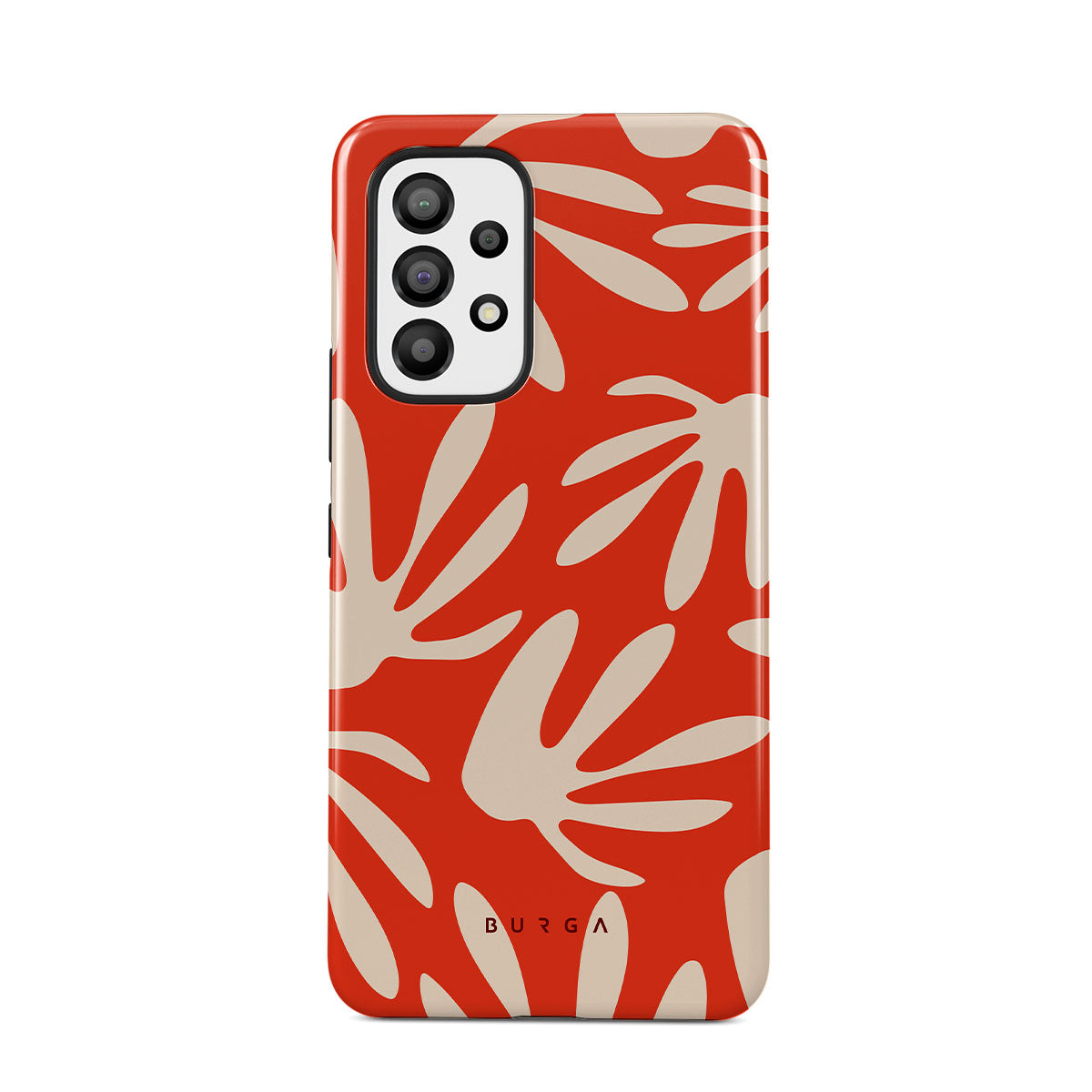 Unfolding the untamed allure of a summer sunset, this design boasts a vivid red background that sets your spirit of adventure aflame. Sprinkled across this fierce backdrop, lines of radiance dance playfully. Experience the warmth of passion and the sparkle of joy in the palm of your hand with our Heatwave Samsung Galaxy A73 phone case.