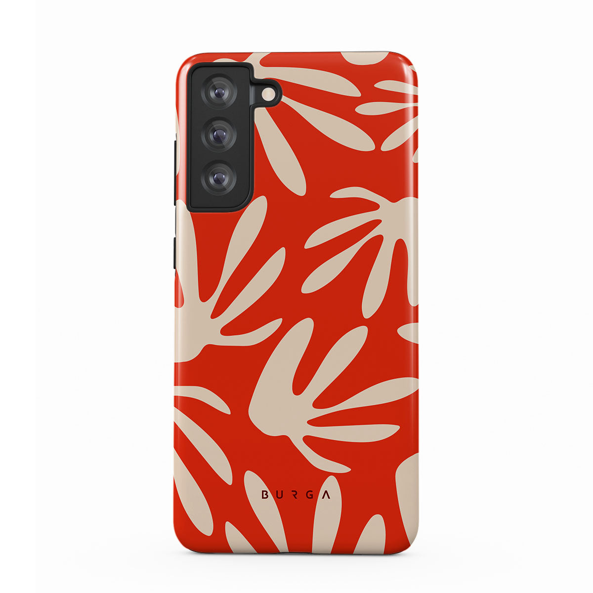 Unfolding the untamed allure of a summer sunset, this design boasts a vivid red background that sets your spirit of adventure aflame. Sprinkled across this fierce backdrop, lines of radiance dance playfully. Experience the warmth of passion and the sparkle of joy in the palm of your hand with our Heatwave Samsung Galaxy S21 FE phone case.