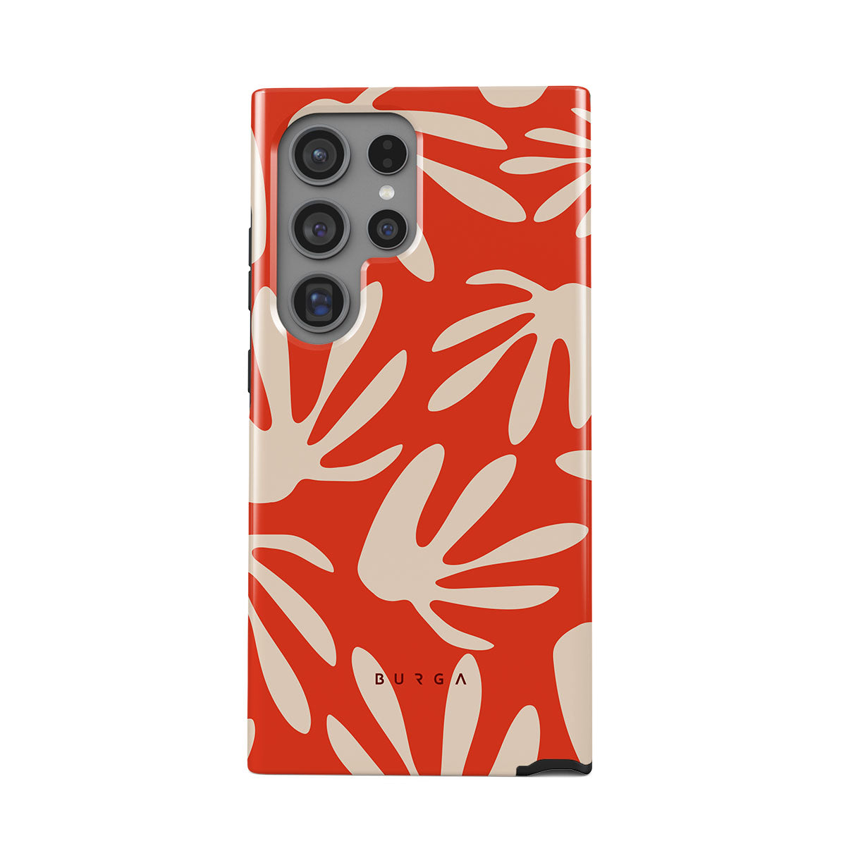 Unfolding the untamed allure of a summer sunset, this design boasts a vivid red background that sets your spirit of adventure aflame. Sprinkled across this fierce backdrop, lines of radiance dance playfully. Experience the warmth of passion and the sparkle of joy in the palm of your hand with our Heatwave Samsung Galaxy S24 Ultra phone case.