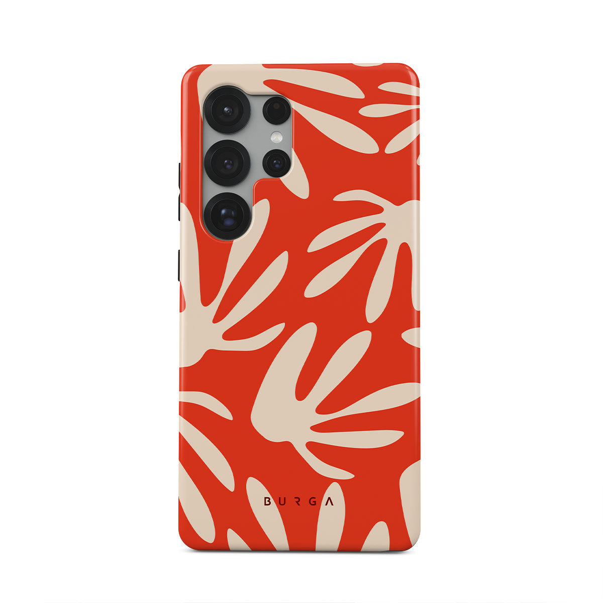 Unfolding the untamed allure of a summer sunset, this design boasts a vivid red background that sets your spirit of adventure aflame. Sprinkled across this fierce backdrop, lines of radiance dance playfully. Experience the warmth of passion and the sparkle of joy in the palm of your hand with our Heatwave Samsung Galaxy S25 Ultra phone case.