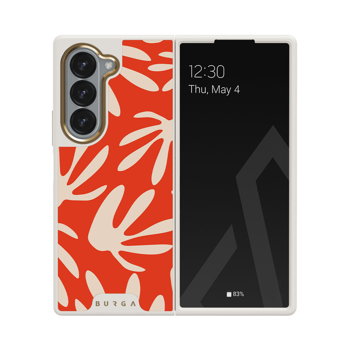 Unfolding the untamed allure of a summer sunset, this design boasts a vivid red background that sets your spirit of adventure aflame. Sprinkled across this fierce backdrop, lines of radiance dance playfully. Experience the warmth of passion and the sparkle of joy in the palm of your hand with our Heatwave Samsung Galaxy Z Fold 6 phone case.